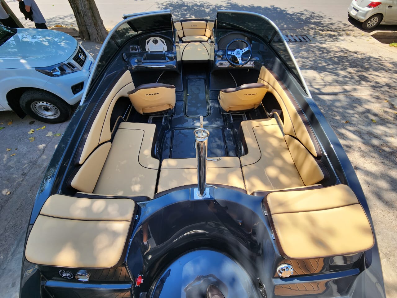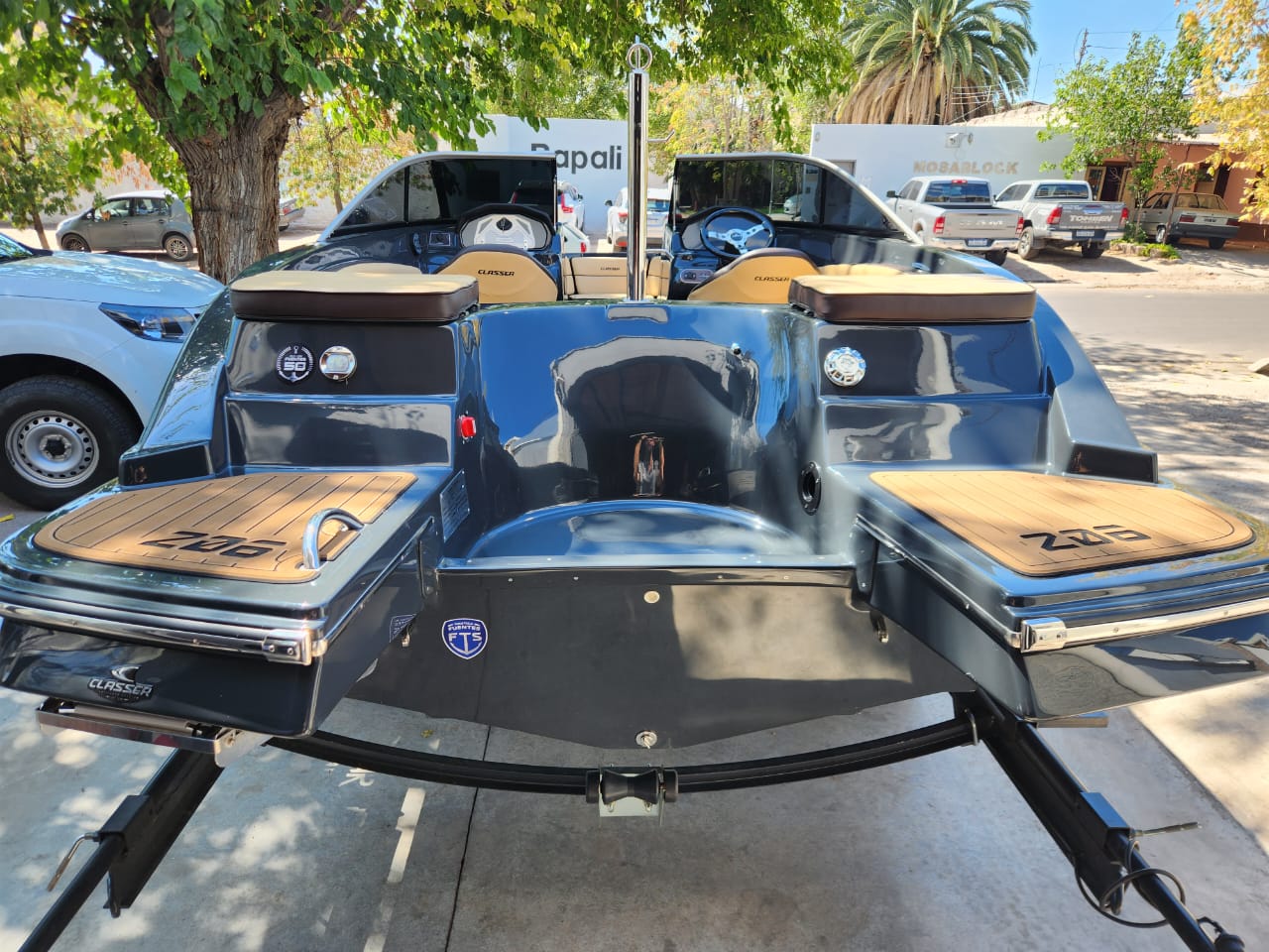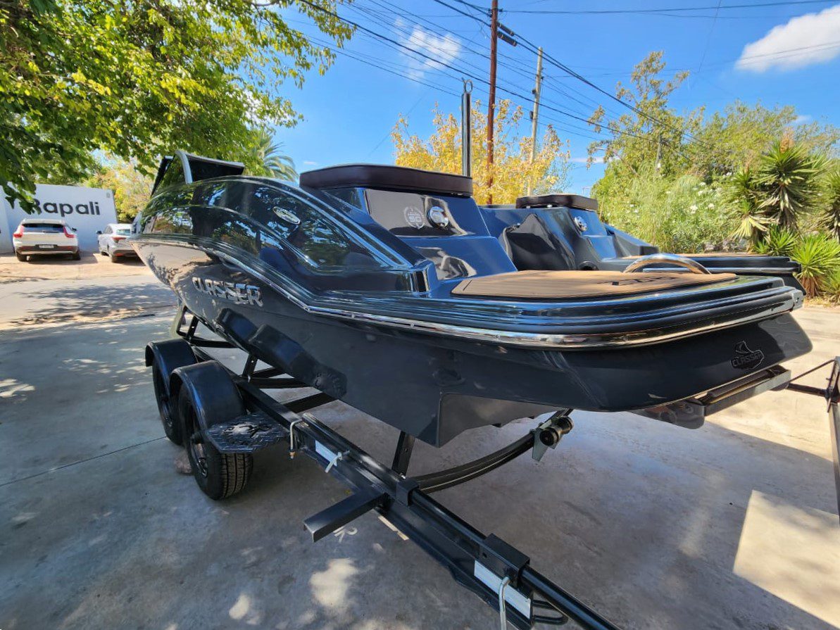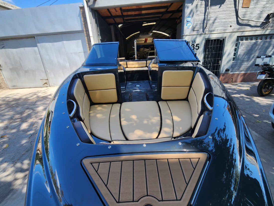 Embarcación deportiva de aproximadamente 6,08 m de eslora y 2,4 m de manga, construida en fibra de vidrio y pensada para recreación familiar y deportes acuáticos. Está homologada para hasta 9 personas, con tanque de combustible cercano a 145 L y admite motores fuera de borda de 135 a 200 HP.
