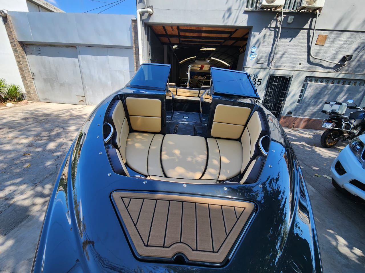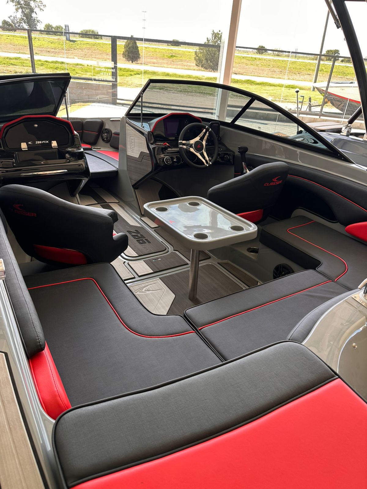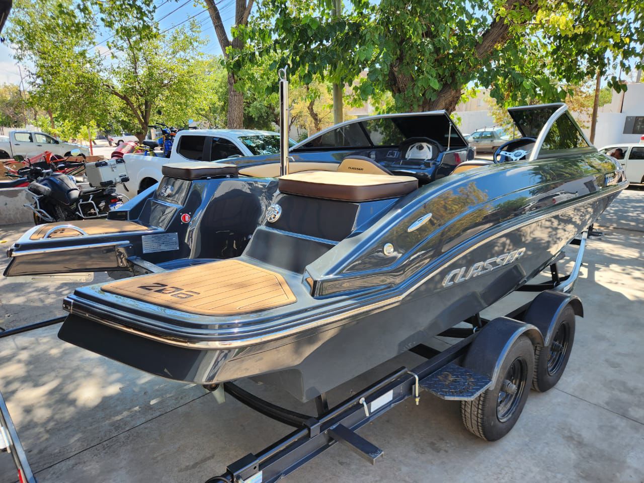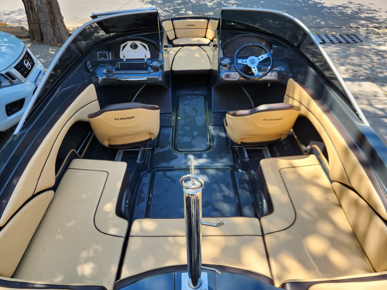 Embarcación deportiva de aproximadamente 6,08 m de eslora y 2,4 m de manga, construida en fibra de vidrio y pensada para recreación familiar y deportes acuáticos. Está homologada para hasta 9 personas, con tanque de combustible cercano a 145 L y admite motores fuera de borda de 135 a 200 HP.