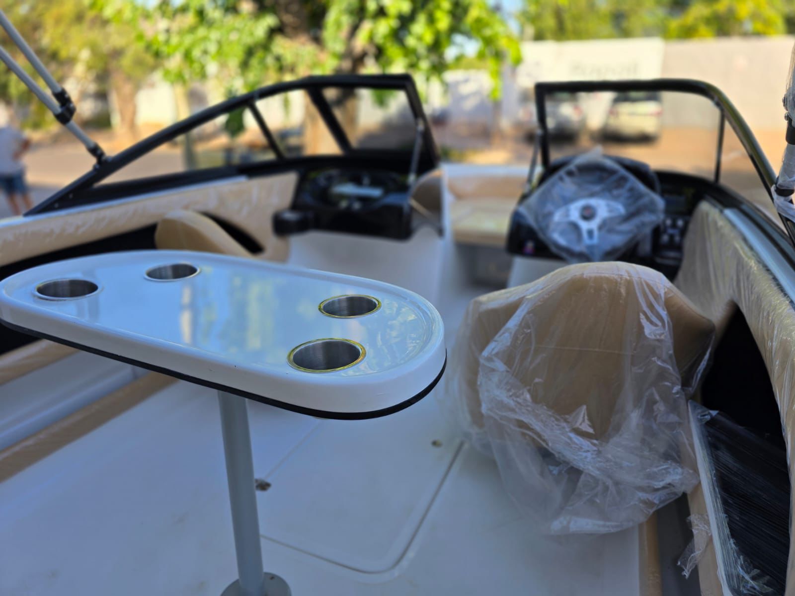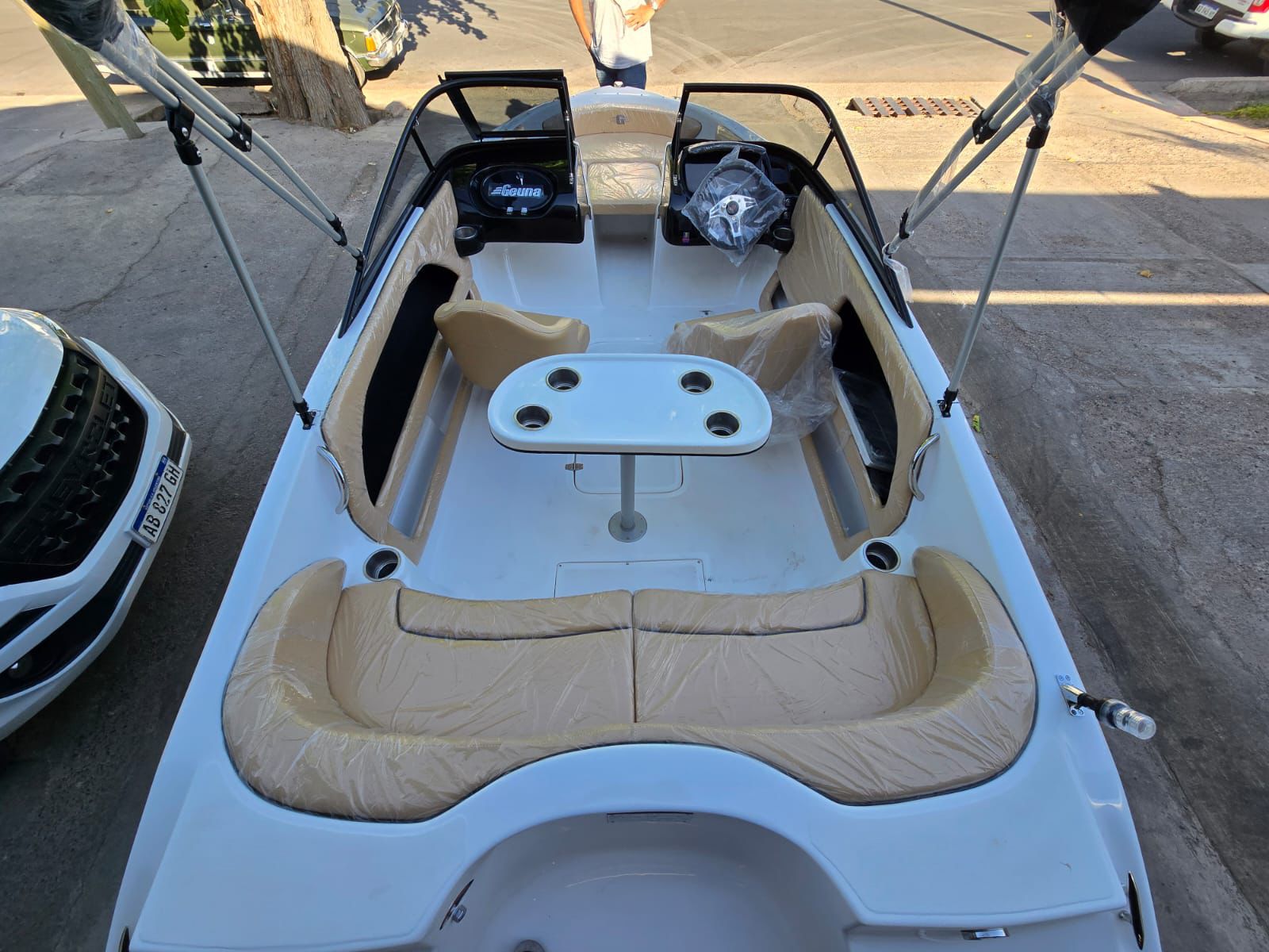 Embarcación deportiva y de recreo de 5,30 metros de eslora, diseñada para ofrecer seguridad, confort y buen rendimiento. Tiene capacidad para 6 pasajeros y admite motores de 50 a 115 HP. Su construcción en PRFV con doble fondo estanco garantiza solidez y estabilidad. Viene muy bien equipada de serie, con butacas giratorias, tapicería importada, bimini, tanque inoxidable de 70 litros, parabrisas tonalizado y bomba de achique.